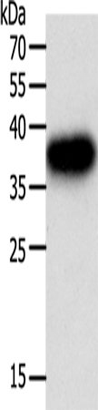 Western Blot analysis of A549 cell using PLAUR Polyclonal Antibody at dilution of 1:400