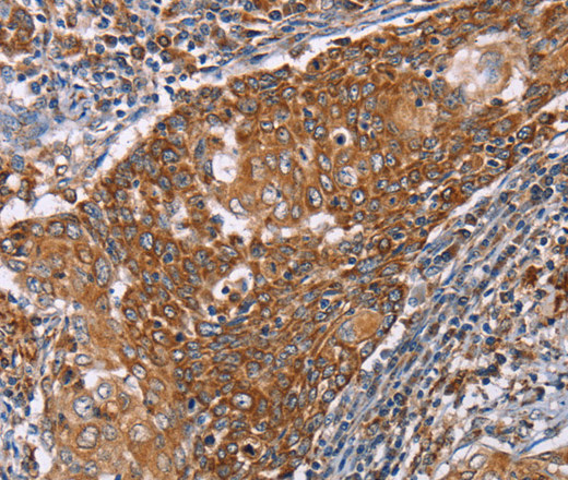 Immunohistochemistry of paraffin-embedded Human cervical cancer tissue using PMPCB Polyclonal Antibody at dilution 1:50