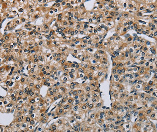 Immunohistochemistry of paraffin-embedded Human prostate cancer tissue using PNPT1 Polyclonal Antibody at dilution 1:40