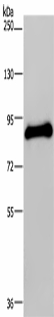Western Blot analysis of Human testis tissue using POMT1 Polyclonal Antibody at dilution of 1:200