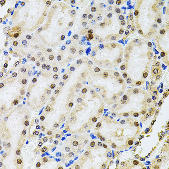 Immunohistochemistry of paraffin-embedded Rat kidney using POP4 Polyclonal Antibody at dilution of 1:100 (40x lens).