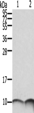 Western Blot analysis of Hepg2 and A549 cell using S100A11 Polyclonal Antibody at dilution of 1:600