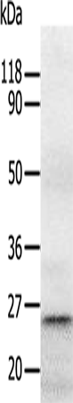Western Blot analysis of Human fetal brain tissue using RAB5A Polyclonal Antibody at dilution of 1:1300