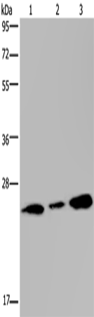 Western Blot analysis of K562, 231 and Hela cell, Human fetal brain tissue using RHOA Polyclonal Antibody at dilution of 1:400