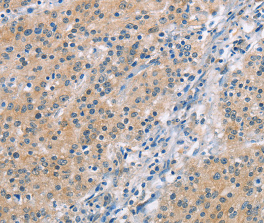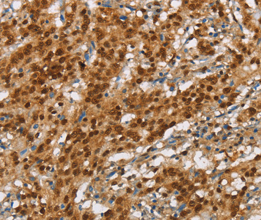 Immunohistochemistry of paraffin-embedded Human gasrtic cancer tissue using NLRP7 Polyclonal Antibody at dilution 1:60