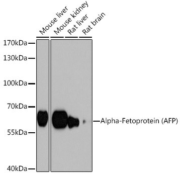 Western blot analysis of extracts of various cell lines using Alpha-Fetoprotein (Alpha-Fetoprotein (AFP)) Polyclonal Antibody at 1:1000 dilution.
