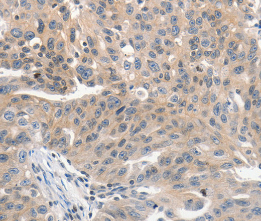 Immunohistochemistry of paraffin-embedded Human ovarian cancer tissue using PRKD1 Polyclonal Antibody at dilution 1:70