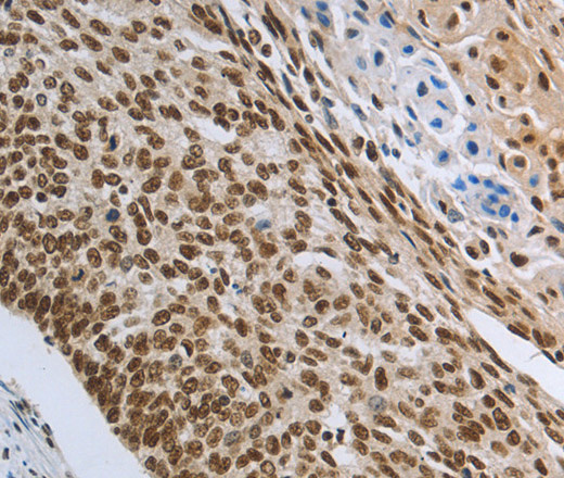 Immunohistochemistry of paraffin-embedded Human cervical cancer tissue using PRMT3 Polyclonal Antibody at dilution 1:30