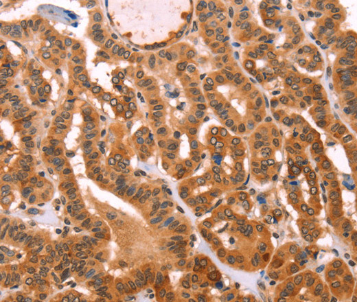 Immunohistochemistry of paraffin-embedded Human thyroid cancer tissue using PROS1 Polyclonal Antibody at dilution 1:40