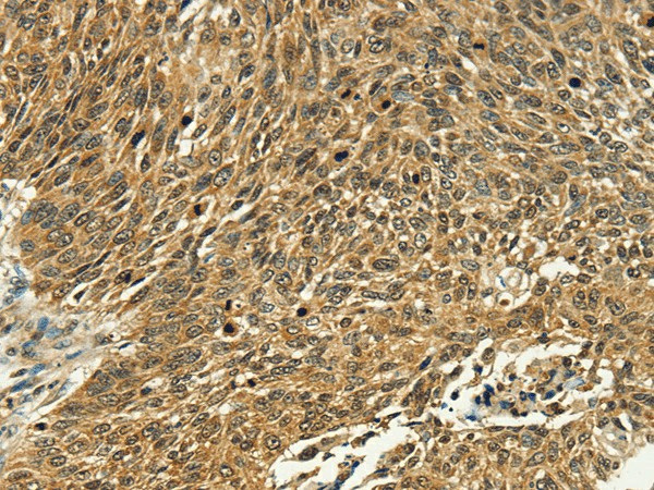 Immunohistochemistry of paraffin-embedded Human lung cancer tissue using PSMD10 Polyclonal Antibody at dilution 1:40
