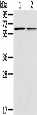 Western Blot analysis of Mouse liver and lung tissue using PTGER2 Polyclonal Antibody at dilution of 1:200