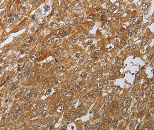 Immunohistochemistry of paraffin-embedded Human esophagus cancer tissue using PTPRM Polyclonal Antibody at dilution 1:80