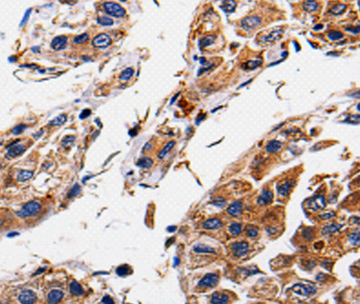 Immunohistochemistry of paraffin-embedded Human gasrtic cancer tissue using RAB41 Polyclonal Antibody at dilution 1:60
