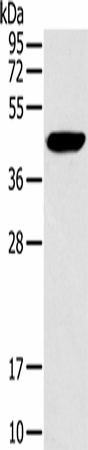 Western Blot analysis of Hela cell using RAD51 Polyclonal Antibody at dilution of 1:200