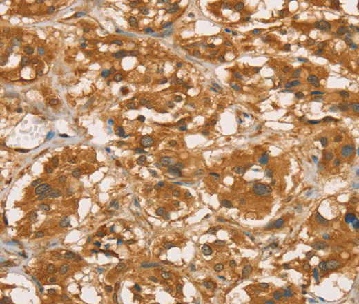 Immunohistochemistry of paraffin-embedded Human thyroid cancer tissue using RBBP8 Polyclonal Antibody at dilution 1:45