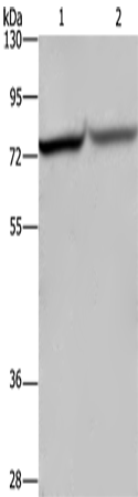 Western Blot analysis of Hela and 293T cell using c-Rel Polyclonal Antibody at dilution of 1:1050