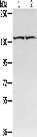 Western Blot analysis of Hela and hepg2 cell using RGS22 Polyclonal Antibody at dilution of 1:400