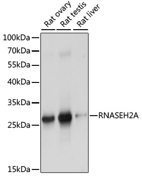 Western blot analysis of extracts of various cell lines using RNASEH2A Polyclonal Antibody at dilution of 1:1000.