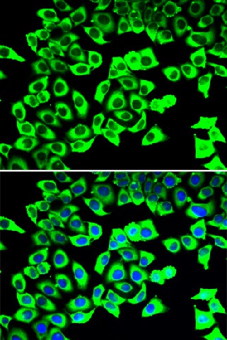 Immunofluorescence analysis of U2OS cells using RPLP2 Polyclonal Antibody