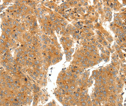 Immunohistochemistry of paraffin-embedded Human liver cancer tissue using SCT Polyclonal Antibody at dilution 1:60
