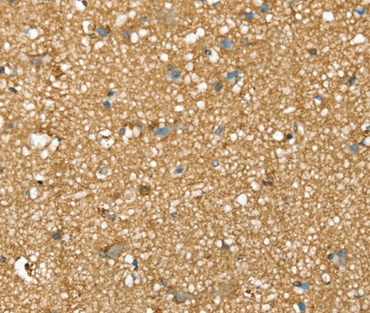 Immunohistochemistry of paraffin-embedded Human brain tissue using SDC3 Polyclonal Antibody at dilution 1:45