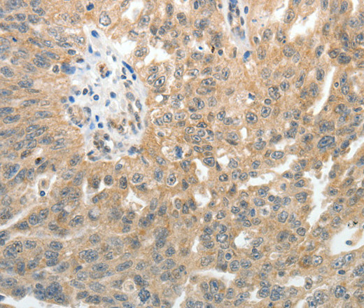 Immunohistochemistry of paraffin-embedded Human ovarian cancer tissue using E-Selectin Polyclonal Antibody at dilution of 1:40