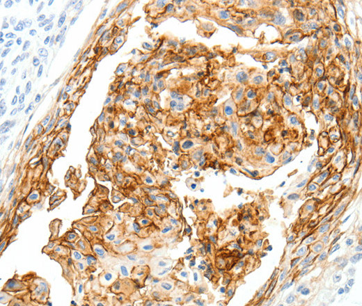 Immunohistochemistry of paraffin-embedded Human cervical cancer tissue using SEMA3D Polyclonal Antibody at dilution 1:40