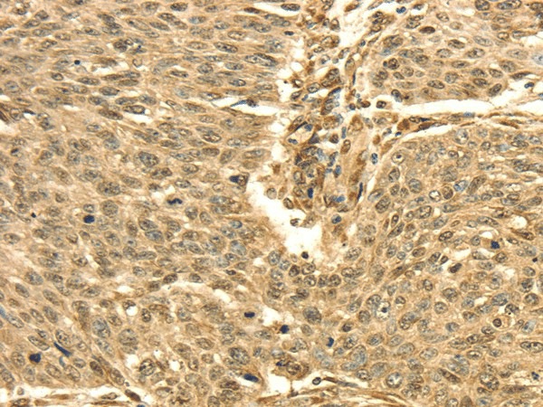 Immunohistochemistry of paraffin-embedded Human lung cancer using SEPT2 Polyclonal Antibody at dilution of 1/30