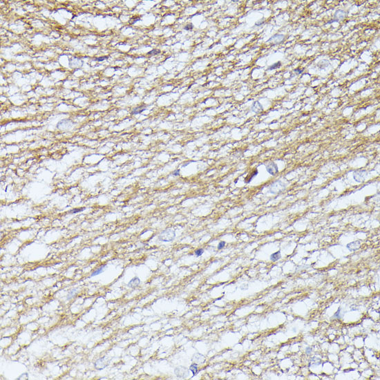 Immunohistochemistry of paraffin-embedded Rat brain using SEPT5 Polyclonal Antibody at dilution of 1:100 (40x lens).