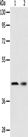 Western Blot analysis of Human fetal liver tissue and Hela cell using SERPINA5 Polyclonal Antibody at dilution of 1:700