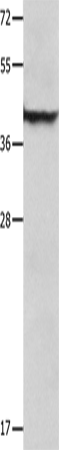 Western Blot analysis of Mouse lung tissue using SERPINB5 Polyclonal Antibody at dilution of 1:1000