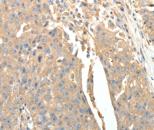 Immunohistochemistry of paraffin-embedded Human ovarian cancer tissue using SFTPD Polyclonal Antibody at dilution 1:30