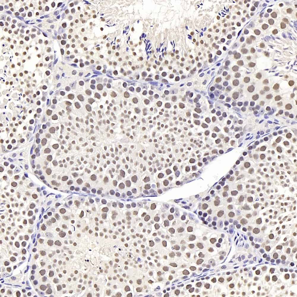 Immunohistochemistry analysis of paraffin-embedded mouse testis using SIRT1 Polyclonal Antibody at dilution of 1:300.