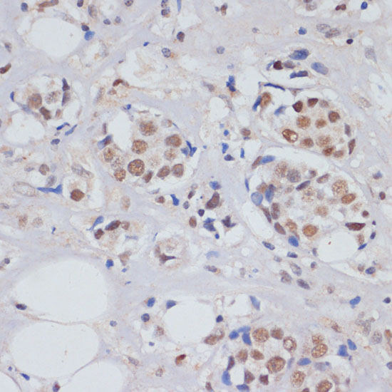Immunohistochemistry of paraffin-embedded Human breast cancer using SKIV2L2 Polyclonal Antibody at dilution of 1:100 (40x lens).