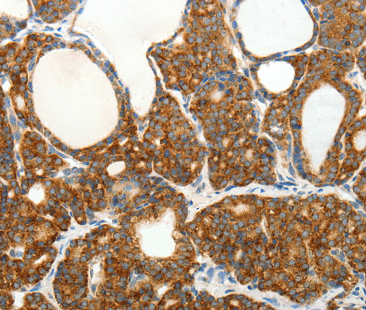 Immunohistochemistry of paraffin-embedded Human thyroid cancer tissue using SLC12A4 Polyclonal Antibody at dilution 1:30