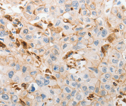 Immunohistochemistry of paraffin-embedded Human lung cancer tissue using SLC15A2 Polyclonal Antibody at dilution 1:60