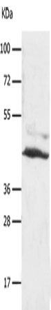 Western Blot analysis of A549 cell using SLC16A7 Polyclonal Antibody at dilution of 1:450