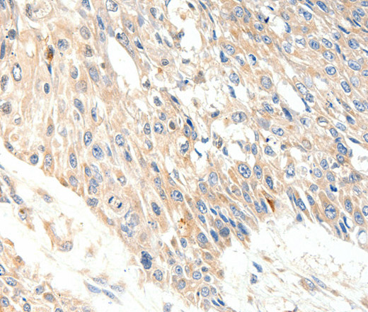 Immunohistochemistry of paraffin-embedded Human esophagus cancer tissue using SLC27A1 Polyclonal Antibody at dilution 1:40