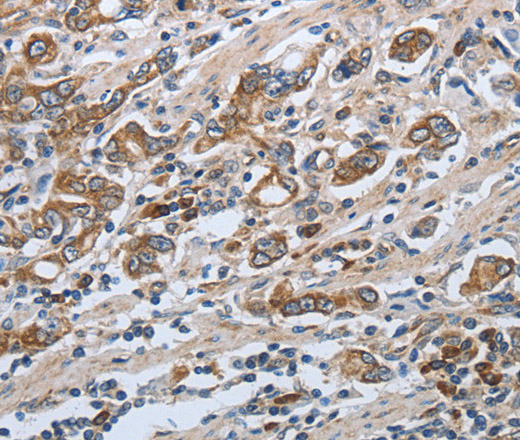 Immunohistochemistry of paraffin-embedded Human gasrtic cancer tissue using SLC34A2 Polyclonal Antibody at dilution of 1:50