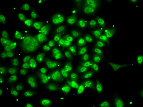 Immunofluorescence analysis of A-549 cells using SMYD3 Polyclonal Antibody