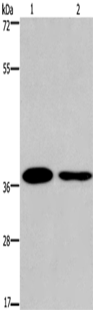 Western Blot analysis of 293T and A549 cell using SNAI1 Polyclonal Antibody at dilution of 1:200