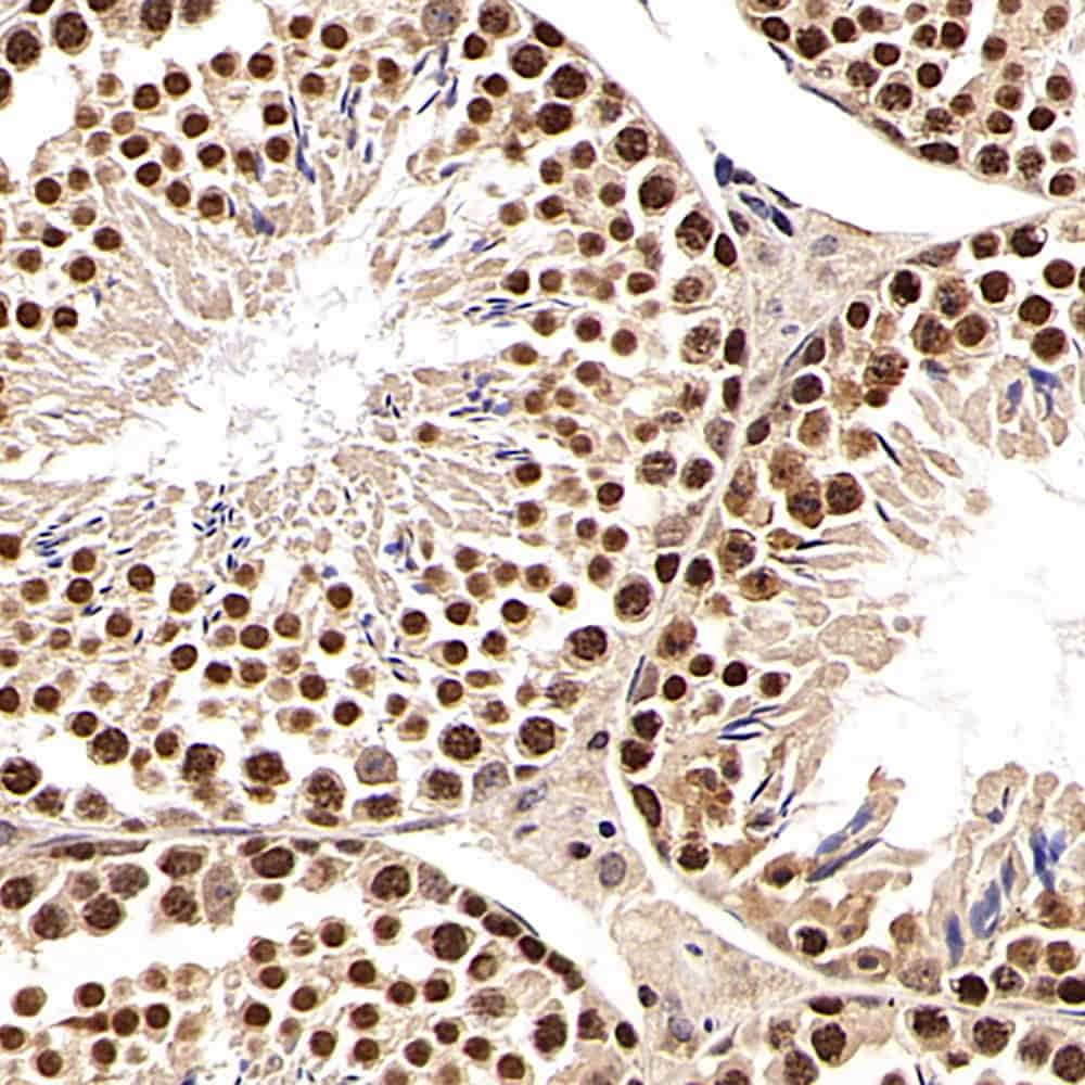 Immunohistochemistry analysis of paraffin-embedded mouse testis using SNAI1 Polyclonal Antibody at dilution of 1:600.
