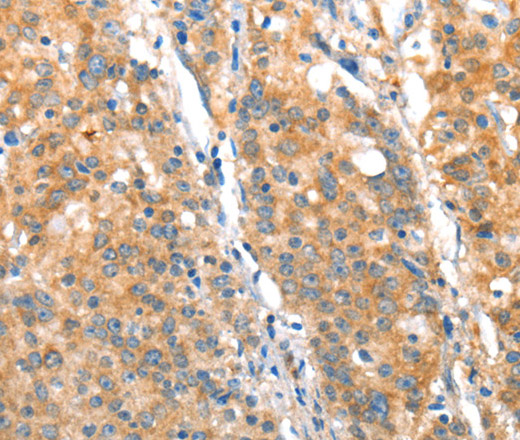 Immunohistochemistry of paraffin-embedded Human gasrtic cancer tissue using ST14 Polyclonal Antibody at dilution 1:70