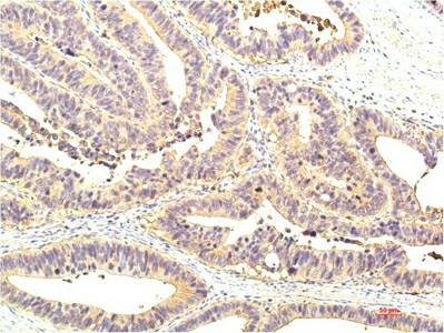 Immunohistochemistry of paraffin-embedded Human colon tissue using STAT1 Monoclonal Antibody at dilution of 1:200.