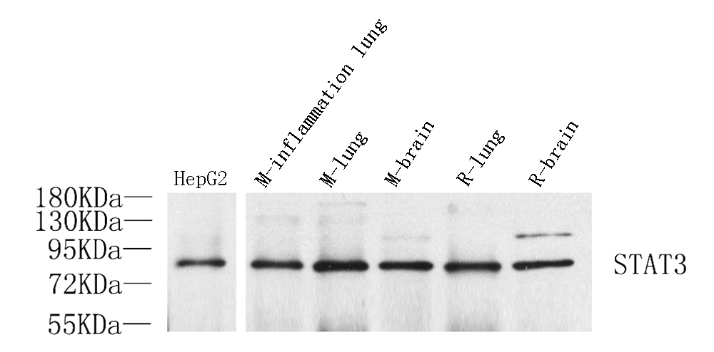 Western Blot analysis of various samples using STAT3 Polyclonal Antibody at dilution of 1:1000.