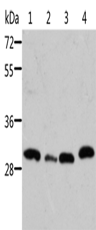 Western Blot analysis of Mouse pancreas and spleen tissue, Mouse heart tissue and 293T cell using STRADB Polyclonal Antibody at dilution of 1:500