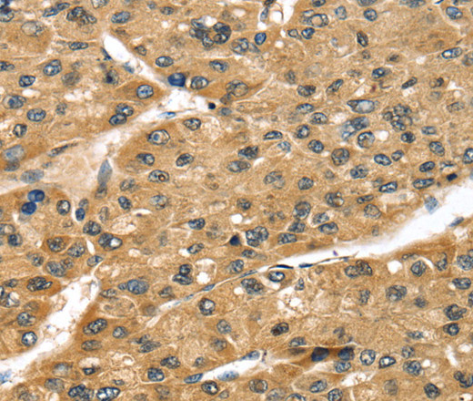 Immunohistochemistry of paraffin-embedded Human liver cancer tissue using STX8 Polyclonal Antibody at dilution 1:45