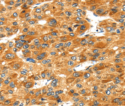 Immunohistochemistry of paraffin-embedded Human liver cancer tissue using STXBP4 Polyclonal Antibody at dilution 1:40