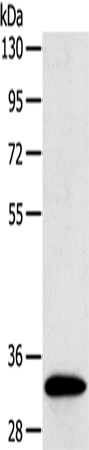 Western Blot analysis of Human fetal intestines tissue using SULT1B1 Polyclonal Antibody at dilution of 1:800
