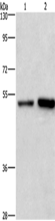 Western Blot analysis of Hela and Jurkat cell using SYT4 Polyclonal Antibody at dilution of 1:700